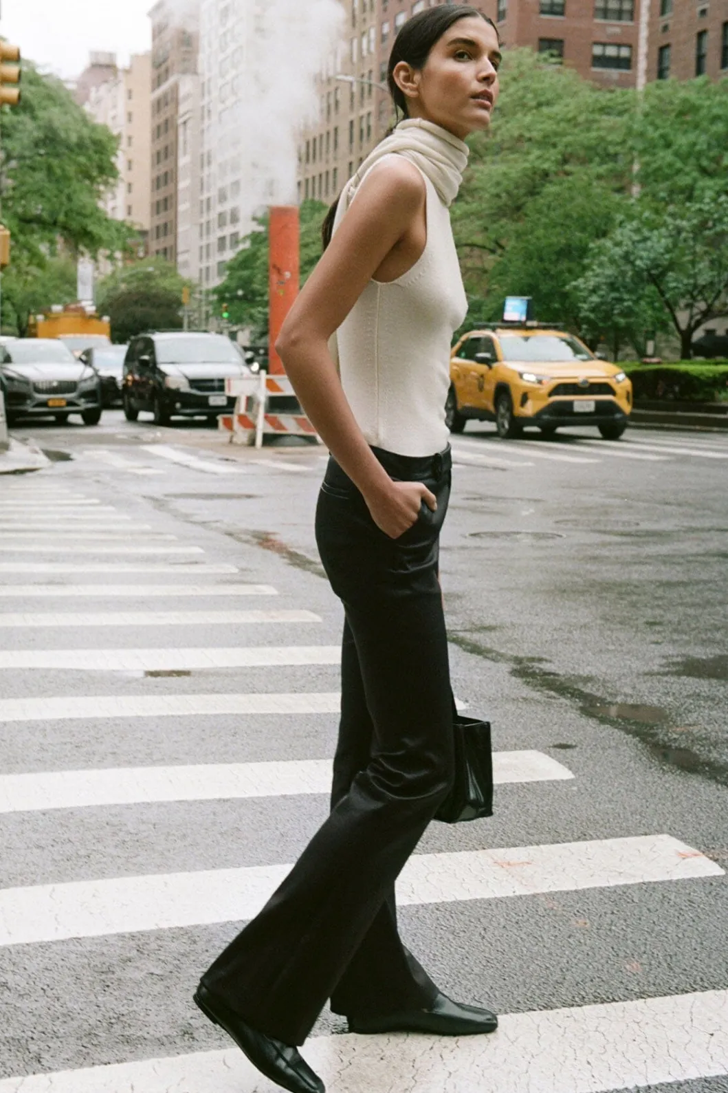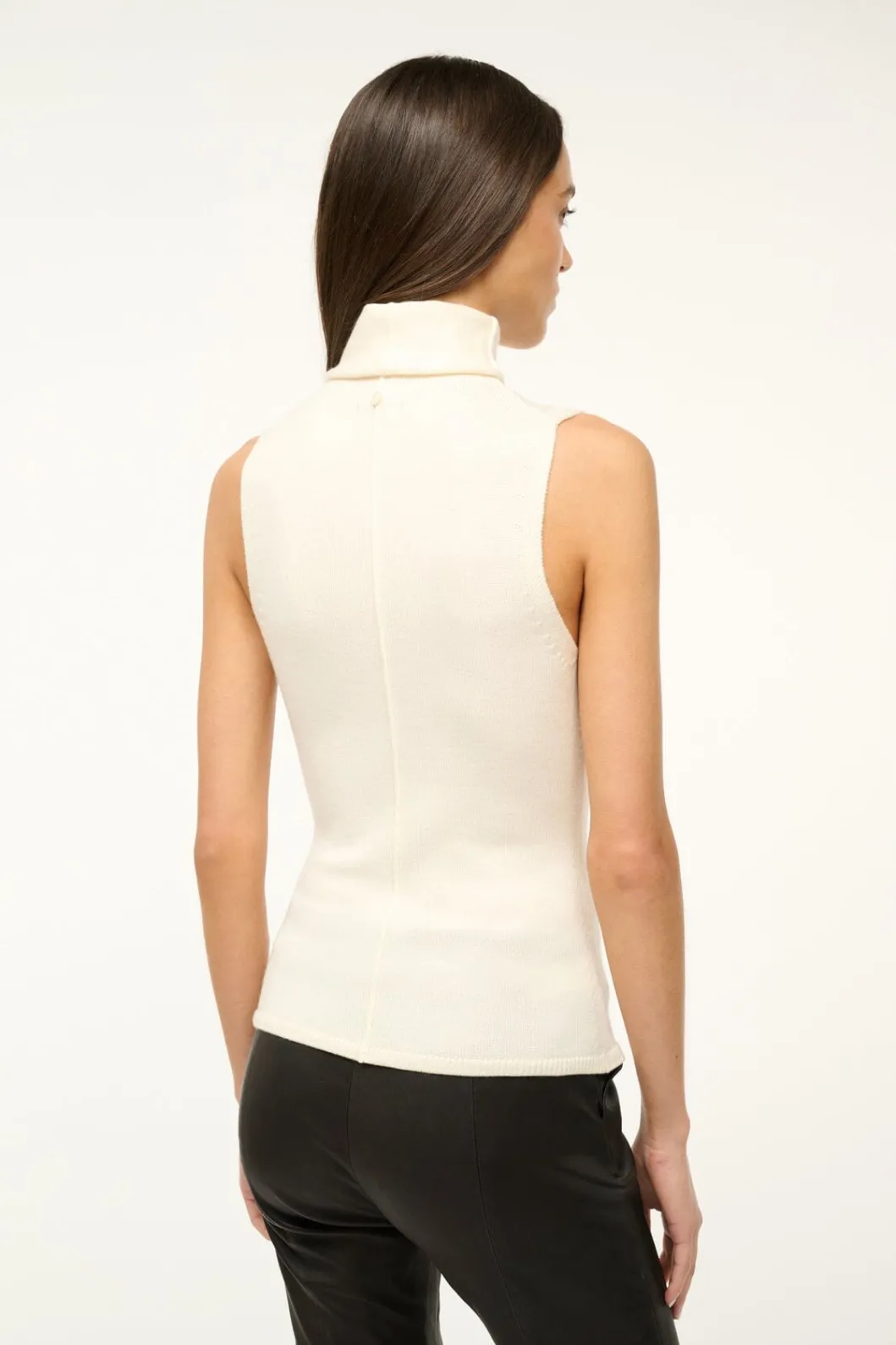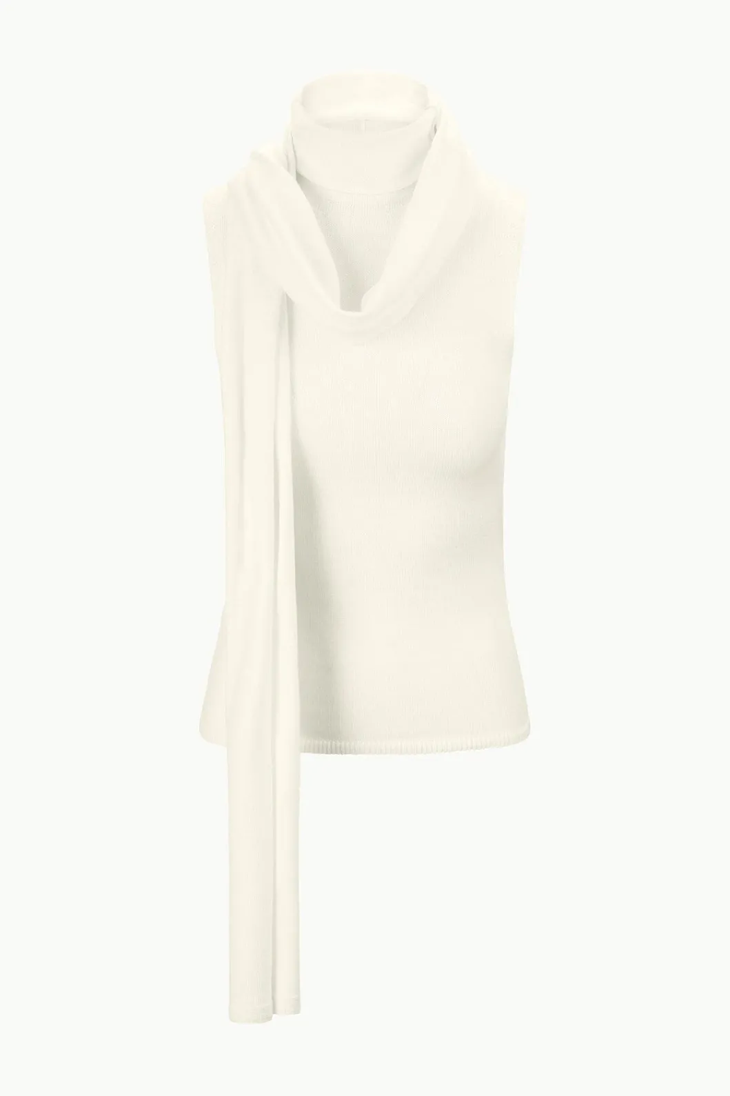 The Canal Top is a lightweight merino wool knit, with a mock turtleneck and comes with a detachable scarf.