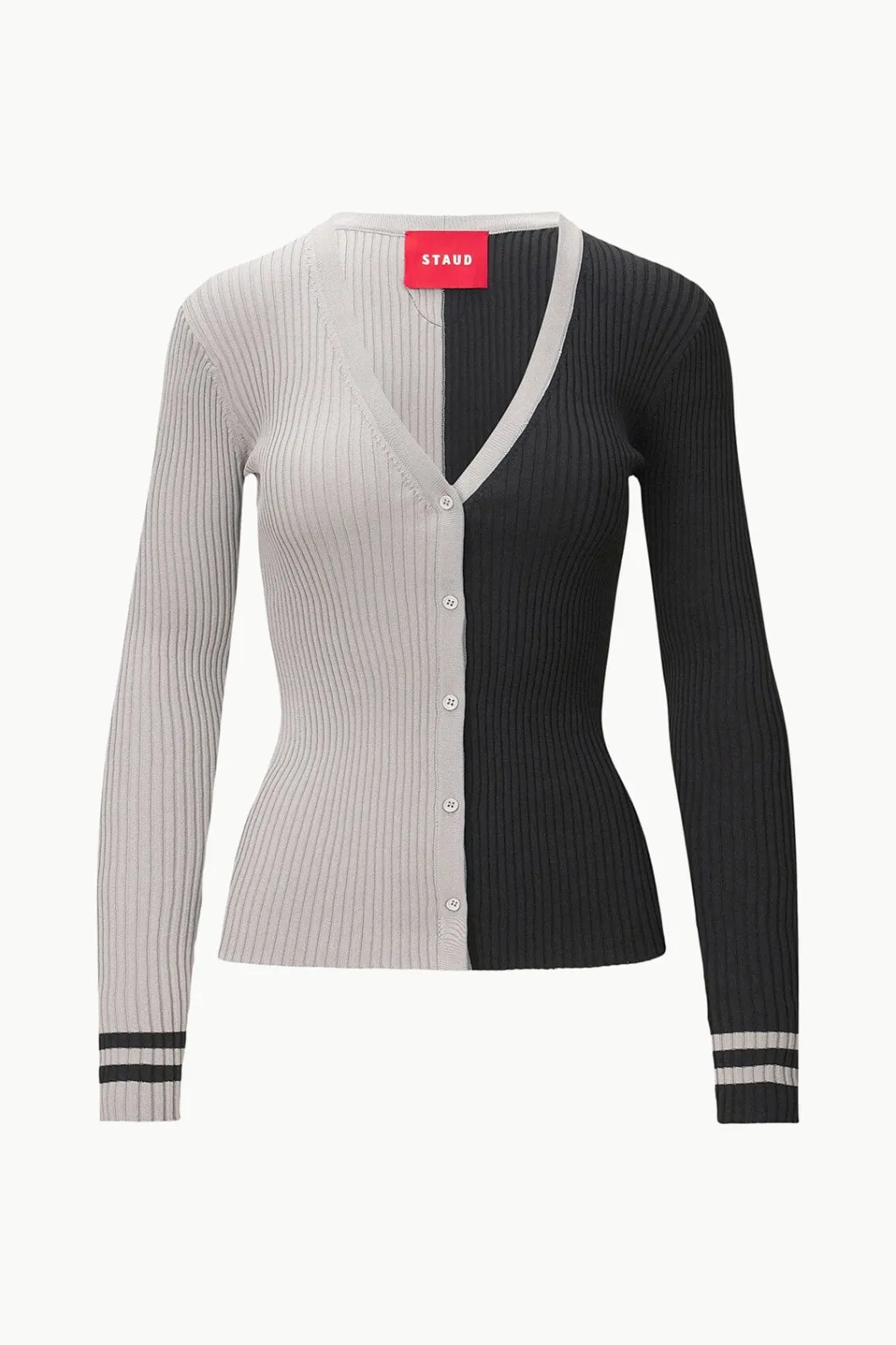 Our favorite cardigan, the Cargo Sweater, is updated to support your favorite NFL teams. The NFL STAUD Cargo Sweater is made out of our stretchy, comfortable compact rib knit fabric, and can be worn buttoned or unbuttoned. This special capsule features our signature color blocked pattern and a NFL team logo on the back.