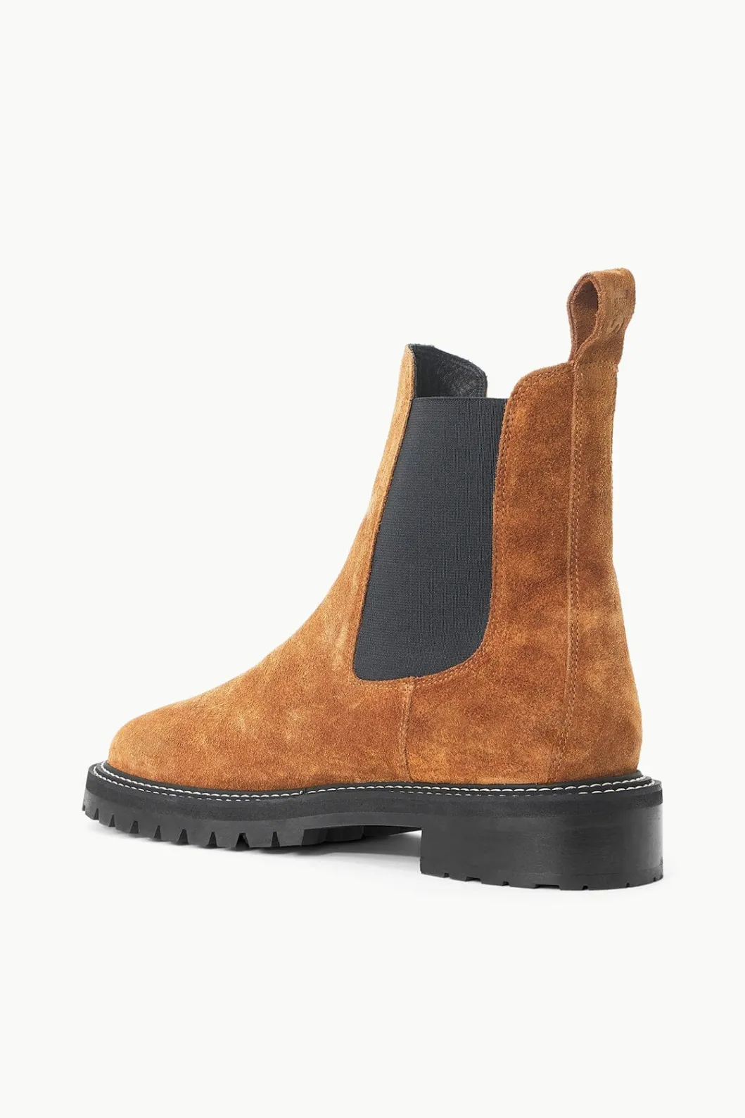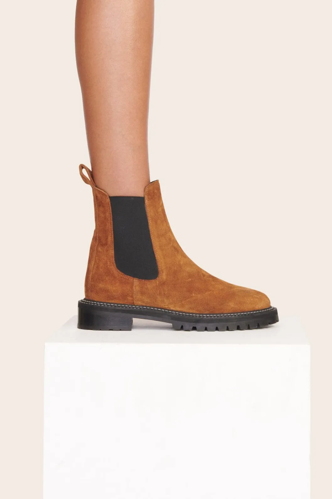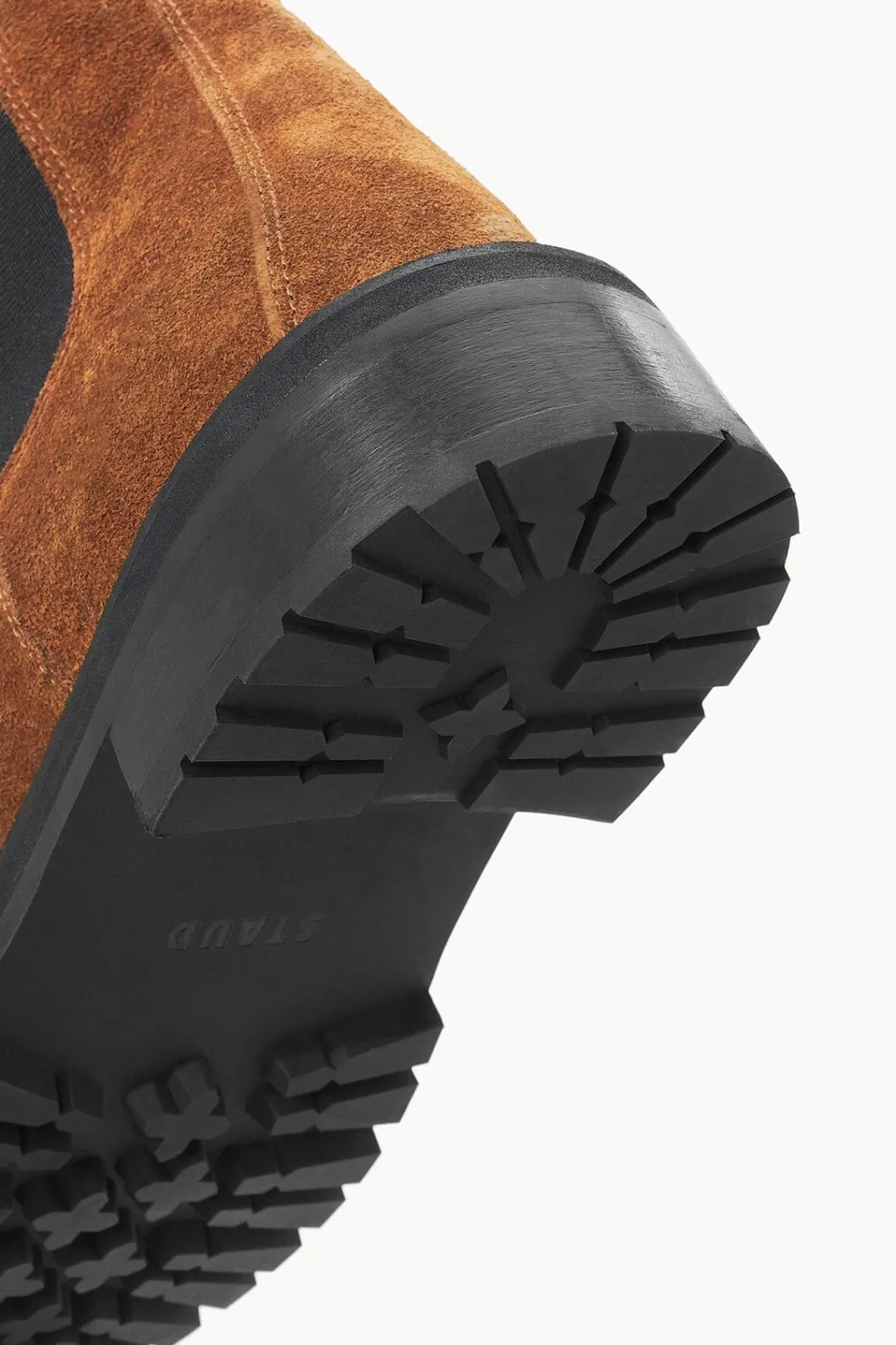 The Dutch Boot is an update to a classic Chelsea boot, crafted in a tan suede and a lug sole.