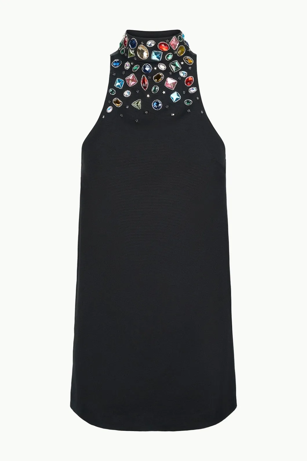 The Finn Dress is inspired by our Mini Ilana, this mini dress is the perfect cocktail dress with multicolored beading and cabachons at the neck.