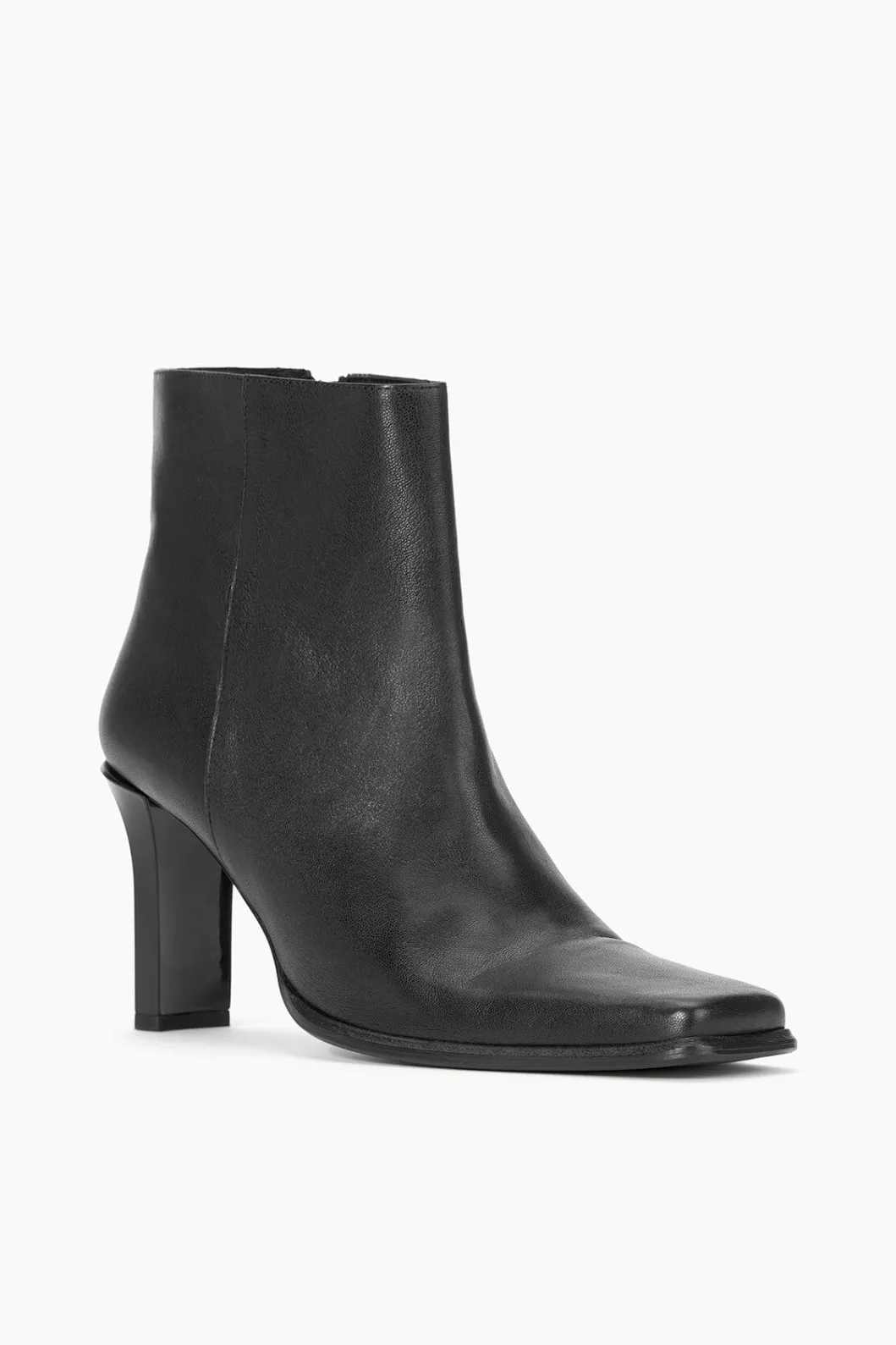 The Hendrix Ankle Boot is a high heel boot with an inside zipper and a square toe box. It features a wide heel and leather lining.