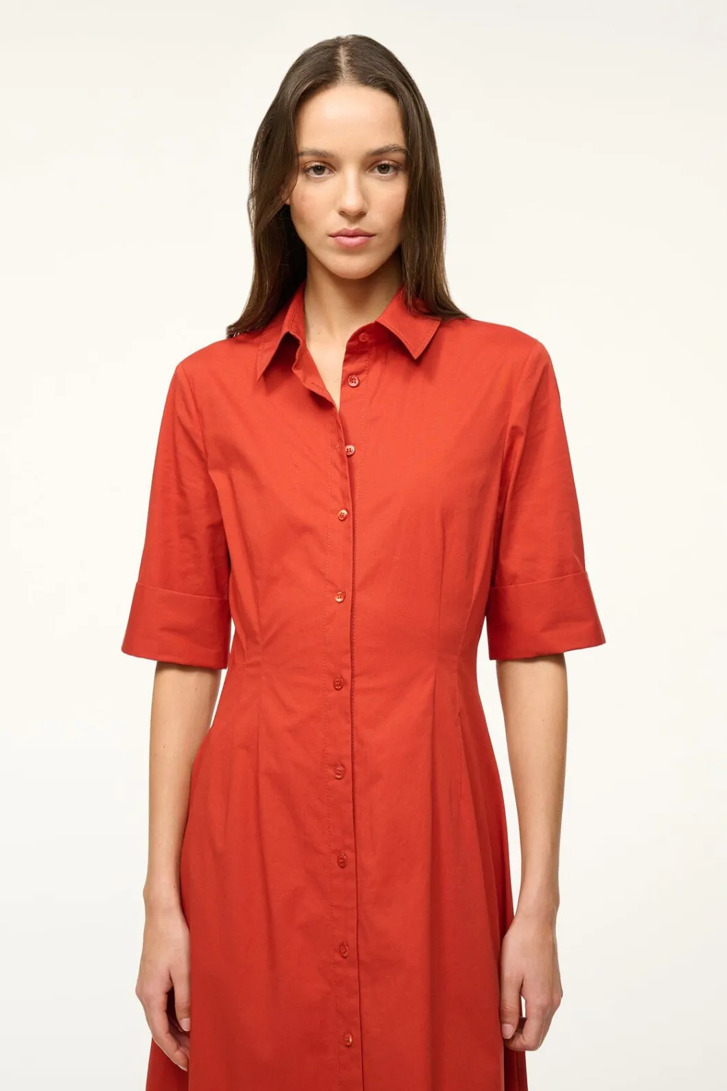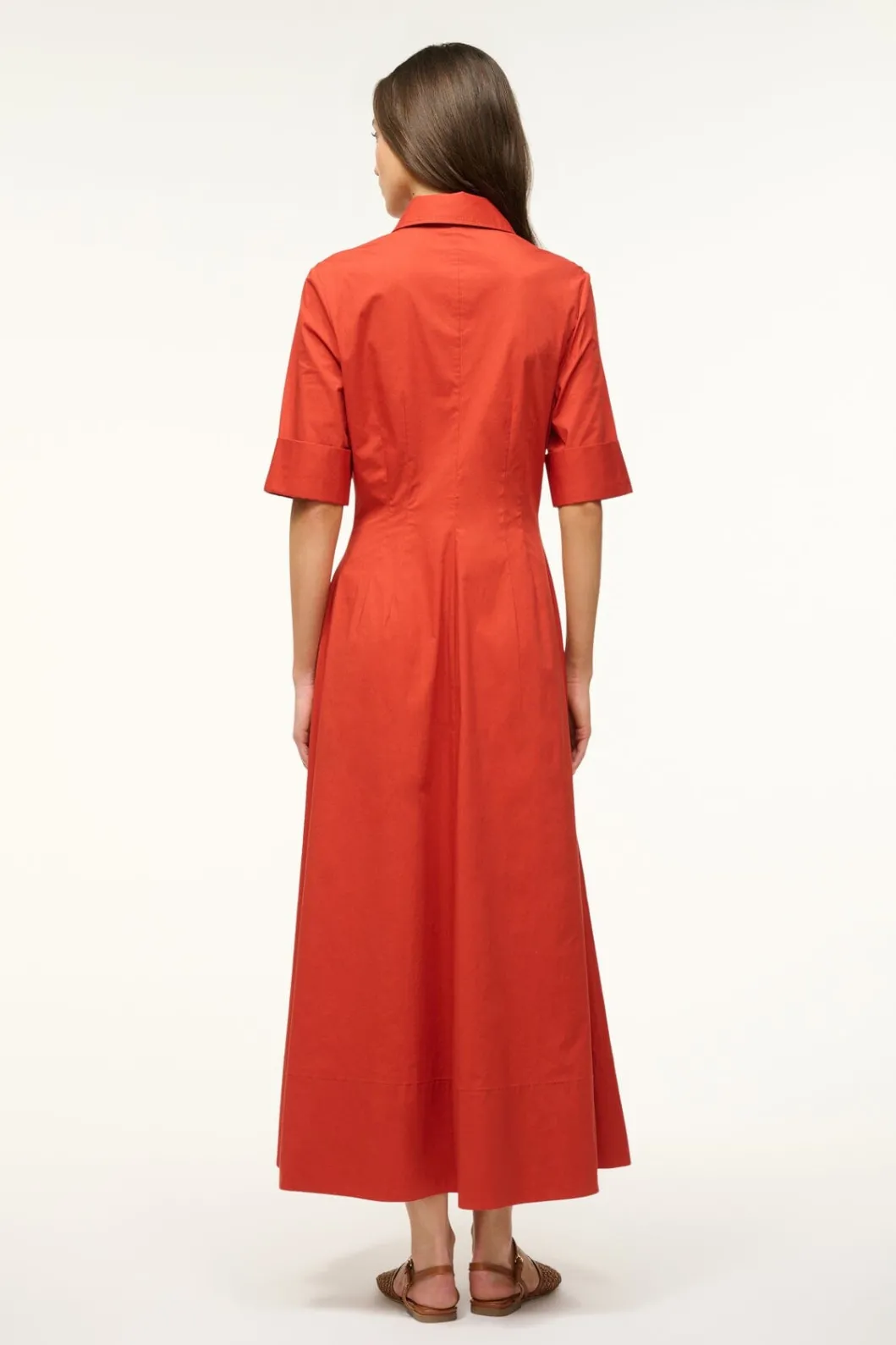 A maxi shirt dress made out of stretchy cotton poplin, the Joan Dress is a modern yet polished take on a classic.