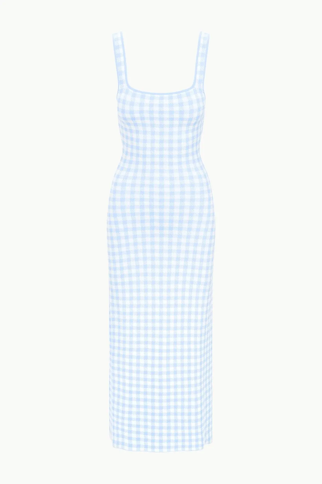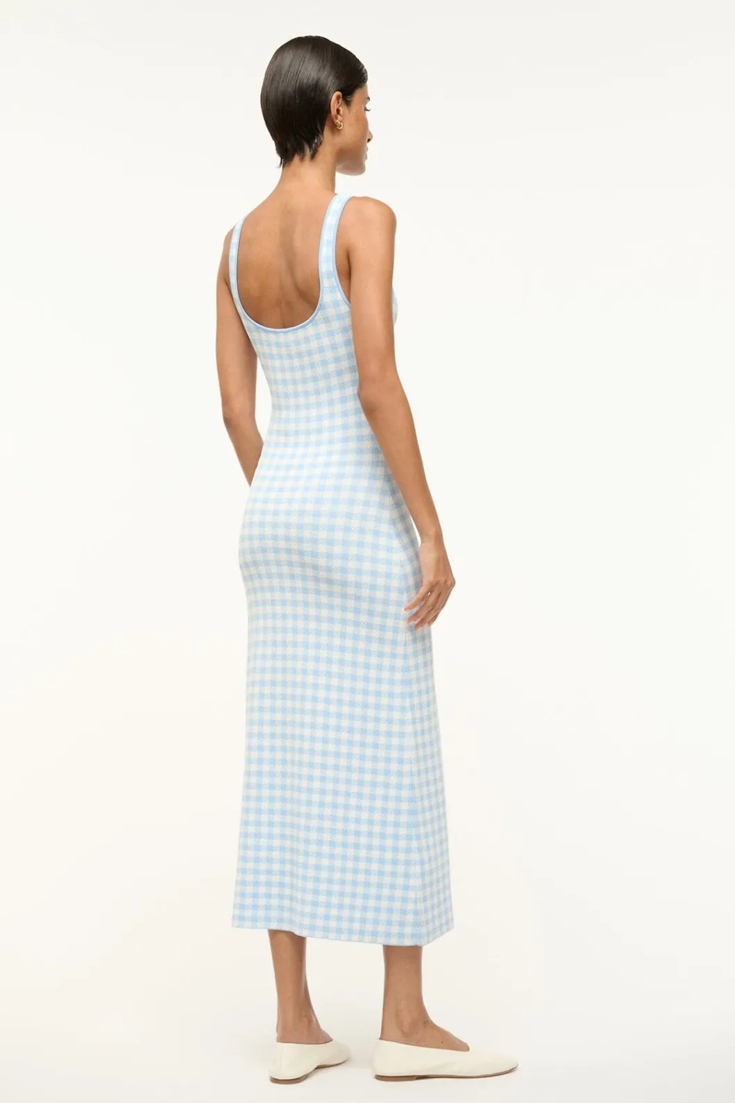 STAUD KATIE DRESS SKY GINGHAM< Knit Dresses | Midi Dresses