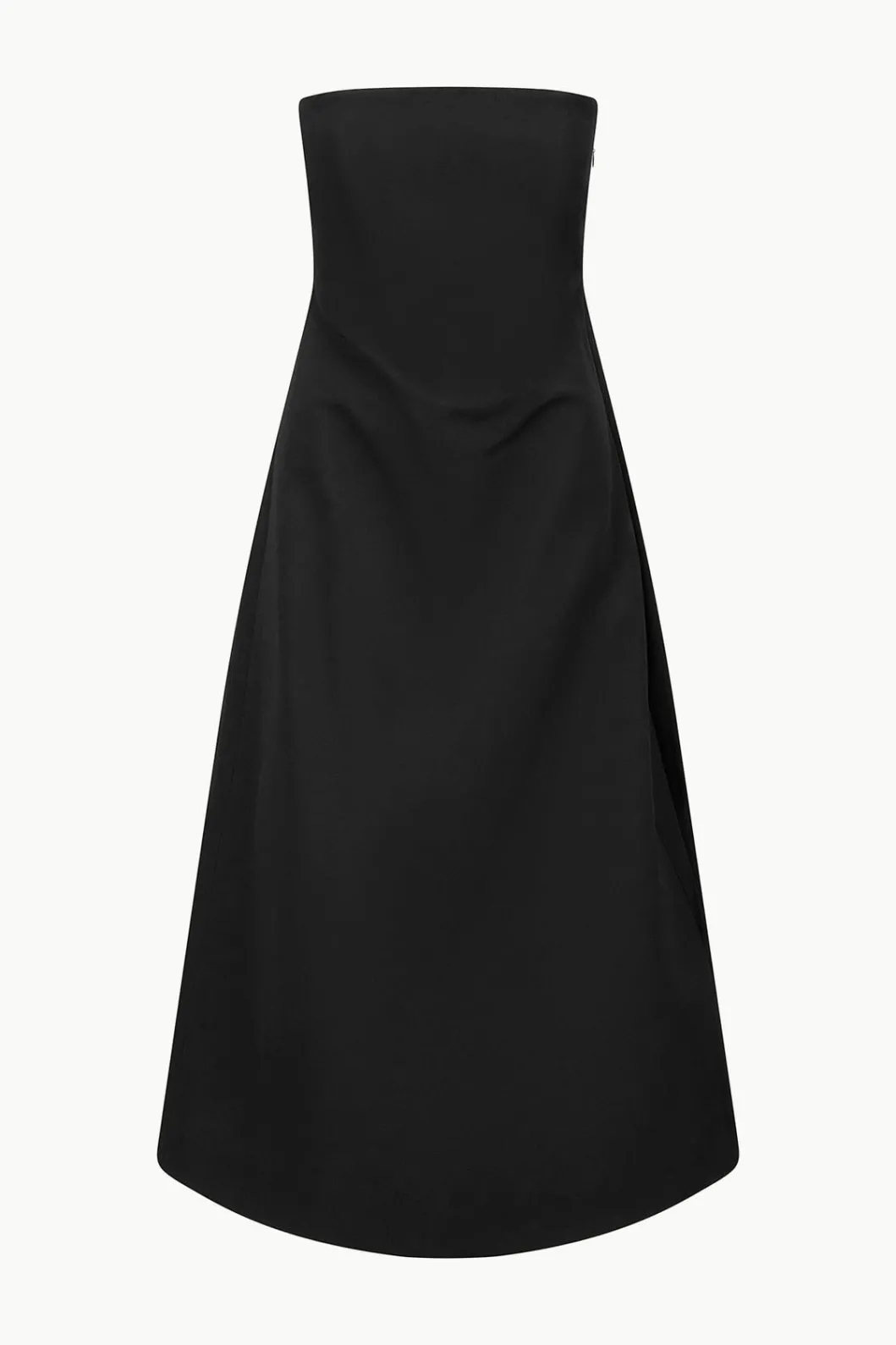 This is a strapless midi length gown with an interior corset and a pleated train at the back. The Kennedy is crafted from a grosgrain fabric making it perfect for a special occasion.