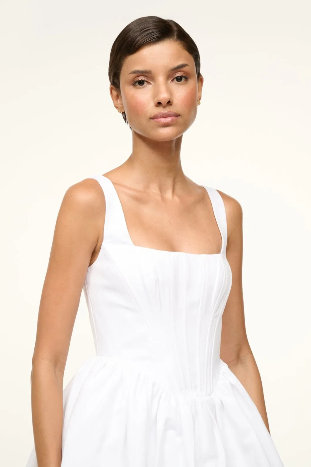 A sleeveless babydoll mini dress, this style features a tulle skirt and corset bodice fashioned after our signature Alice Top.