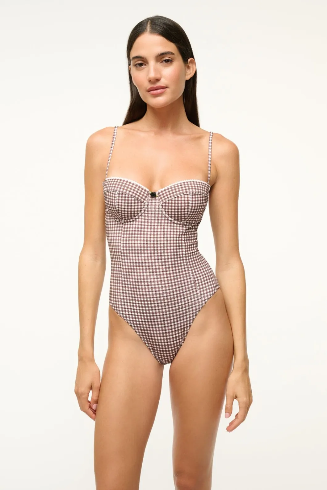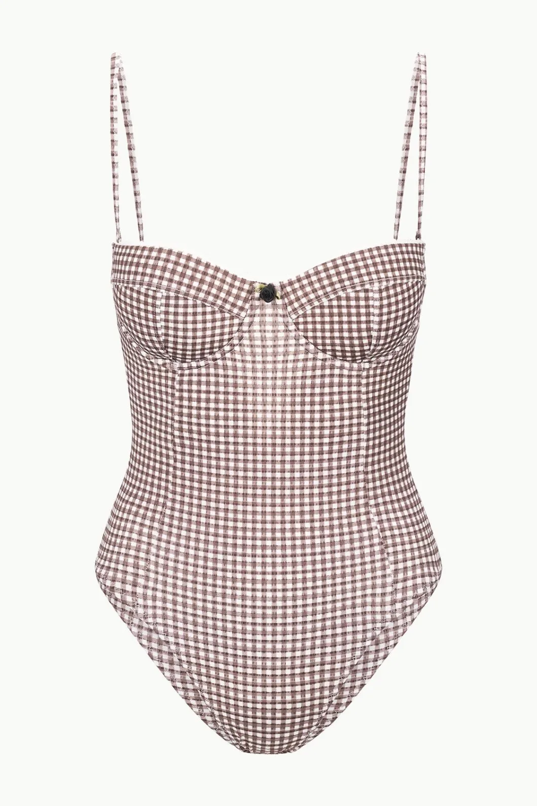 STAUD MAEVE ONE PIECE DARK CHOCOLATE MICRO CHECK< Swim | One Pieces