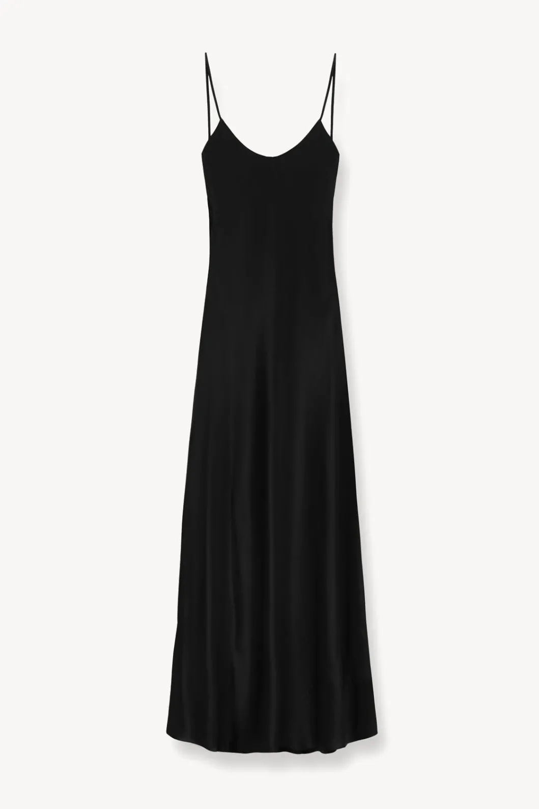 A classic slip dress crafted from a stretchy silk fabric. The Milner features thin spaghetti straps and a maxi length.