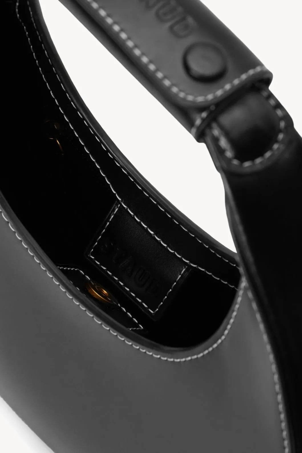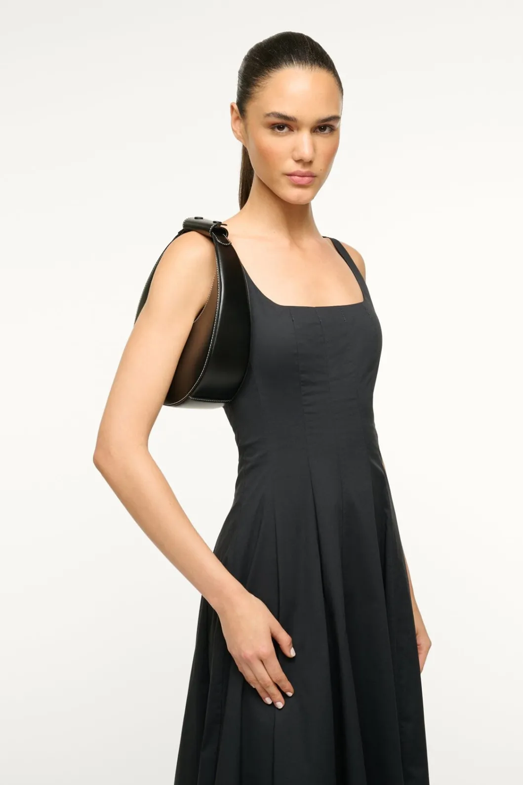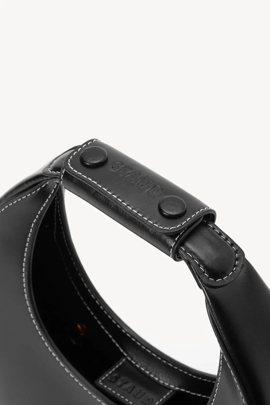 The Mini Moon Bag is an update to our classic crescent moon shape in leather with inner suede lining and a magnetic closure to hold your essentials. This bag comes with a removable crossbody strap.