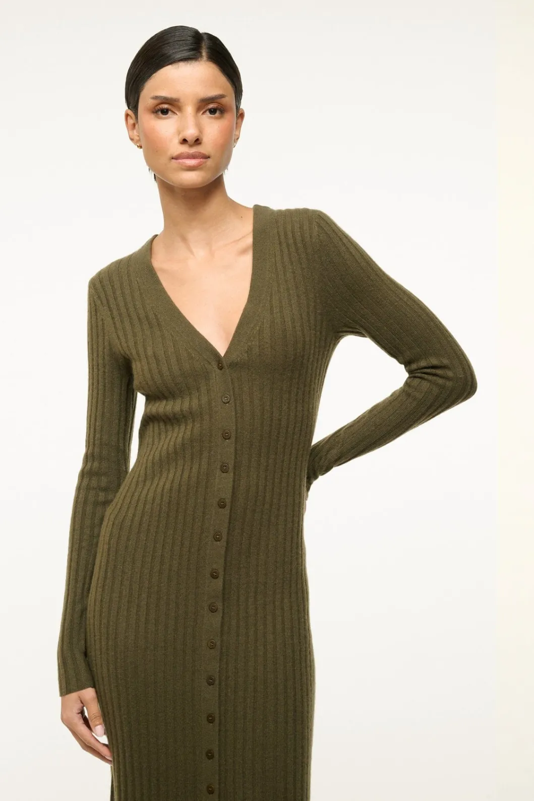 STAUD SHOKO CASHMERE SWEATER DARK OLIVE< Dresses | Knit Dresses
