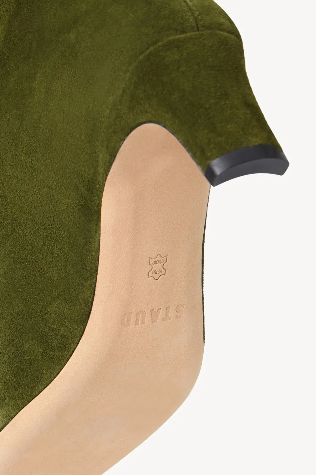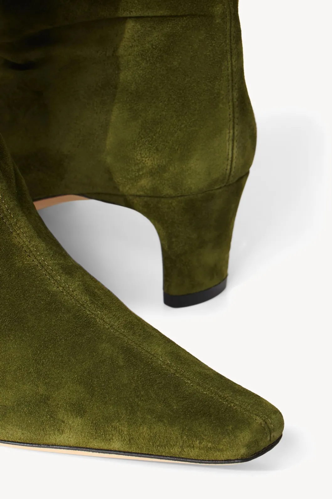 The Wally is a slouchy, suede knee-high boot featuring a pointed toe and a slim heel design. …