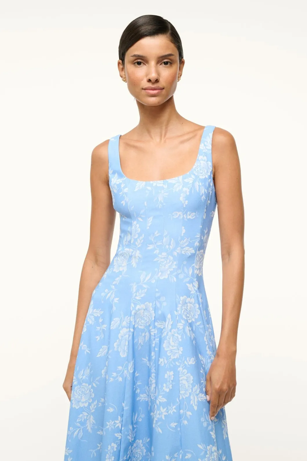 STAUD WELLS DRESS BLUE ROSE< Midi Dresses | Dresses