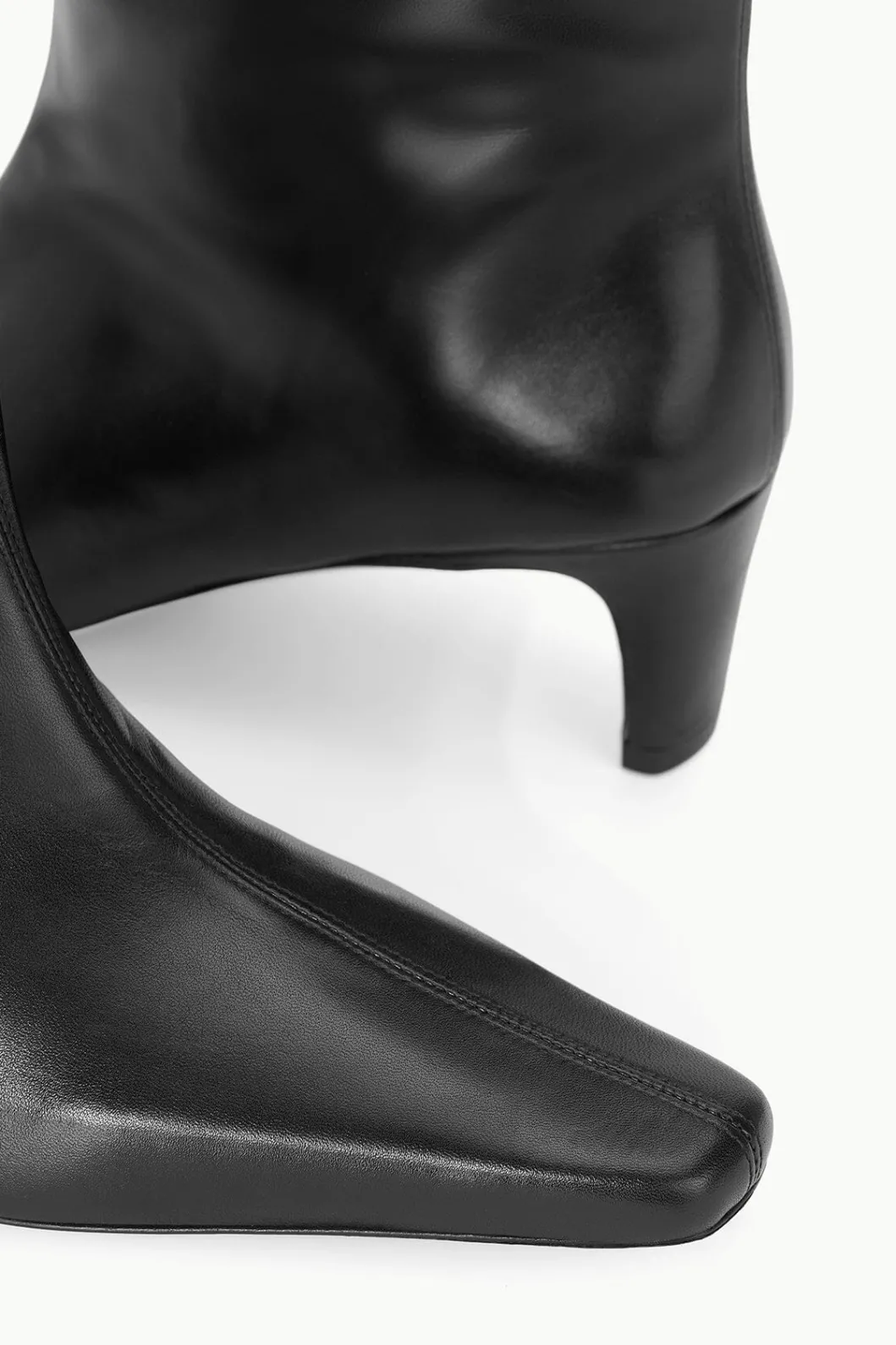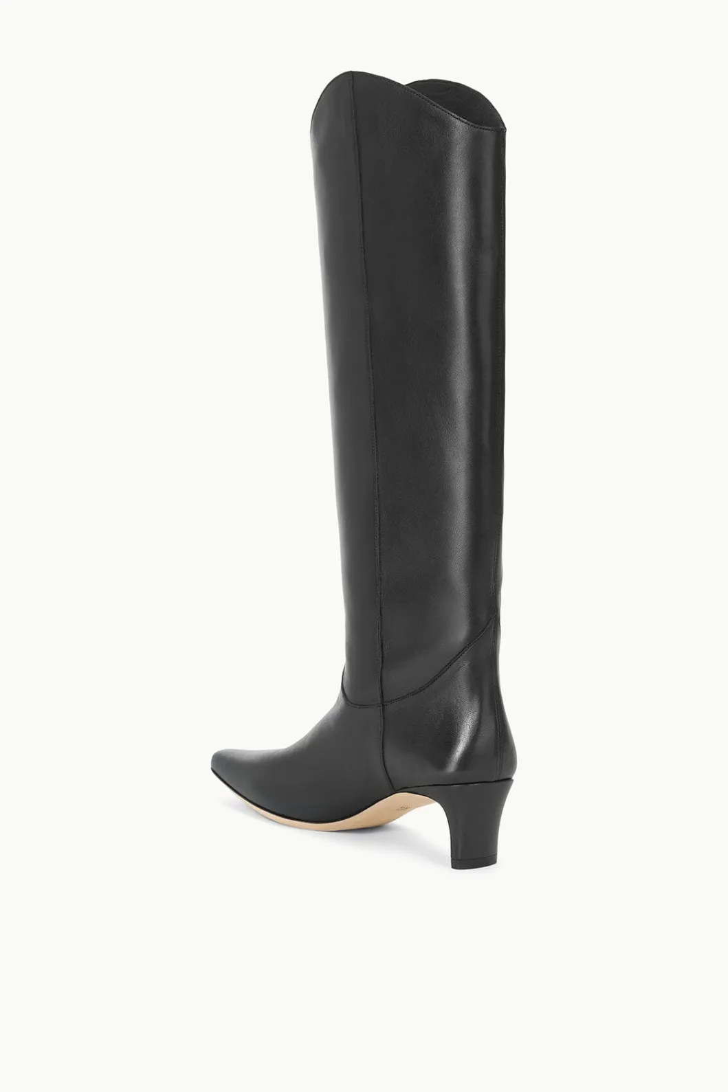 Our signature Wally Boot with a Western inspired curved topline. This style features the classic Wally blade heel and pointed toe.