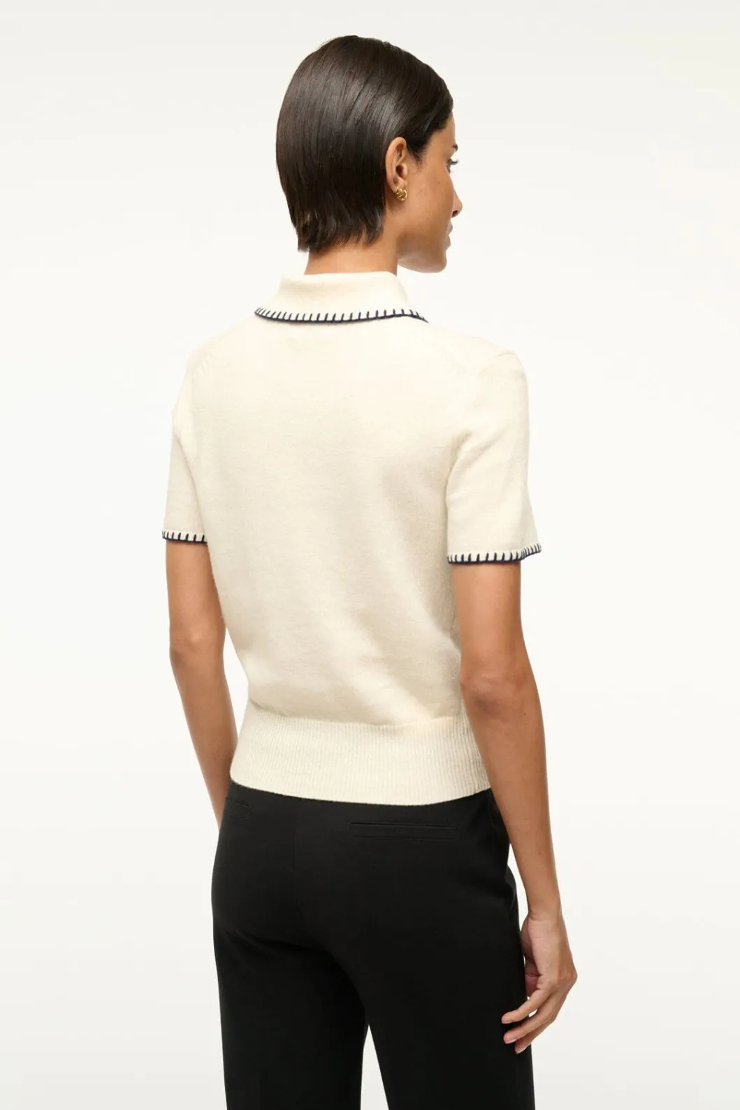 STAUD WINDSOR TOP IVORY NAVY< Tops